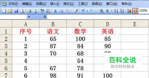 打开excel成绩统计表,要求把全体学生的语数英成绩100分的改为满分,空格的改为缺考。怎么做呢,一个一个改太慢,可以使用Excel的查找与替换功能来做。