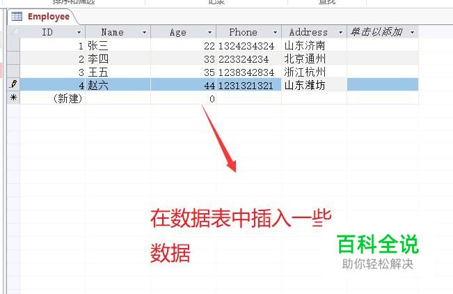 然后在数据表中插入一些数据,如下图所示,这里简单的插入几条就可以,用来后面的数据演示