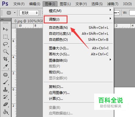 使用ps将我们的图片打开,然后在图像菜单那里找到调整选项,如图所示: