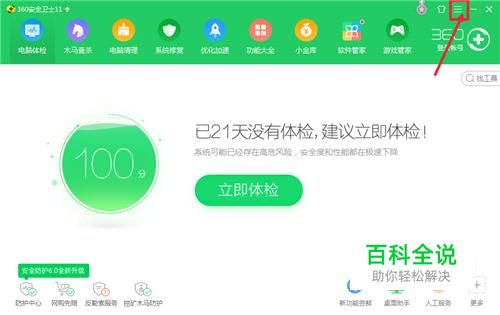 首先,我们就是在电脑桌面上启动“360安全卫士”这款软件,进入到安全卫士的软件主页面。