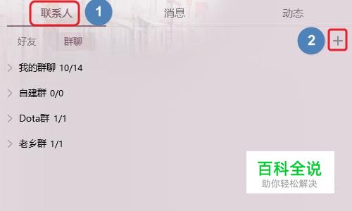 小编以目前最新的2018版QQ为例,打开QQ面板之后切换到“联系人”处,这时我们会在页面的右上角看到一个“+”号;