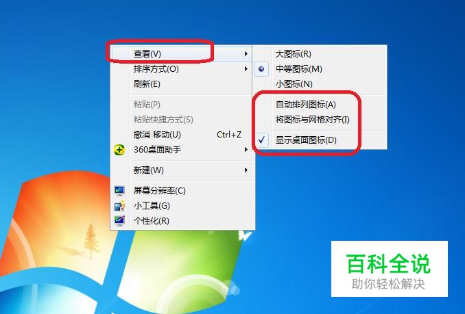 首先,我们右键点击桌面,选择“查看”,就能看到桌面图标排列的三种方式。