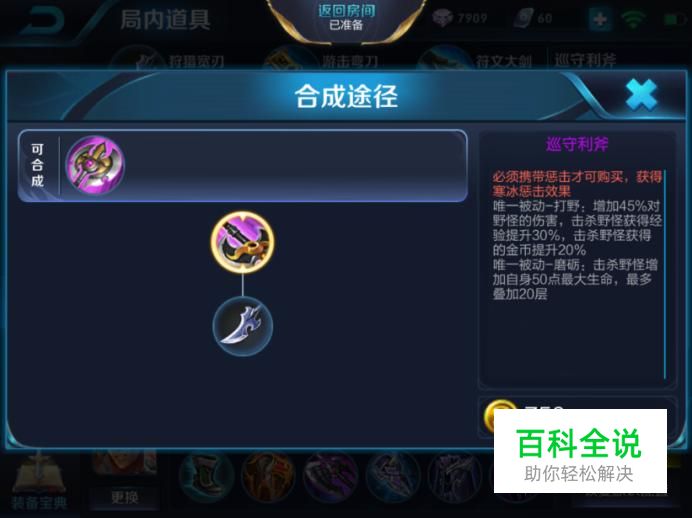 达摩打野第一件装备建议出巡守利斧,这样可以提高达摩的打野效率。