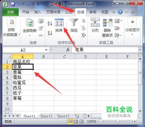 首先,打开需要排序的Excel文档,将光标定位在数据区内任一格,再点击数据菜单,点击排序功能。
