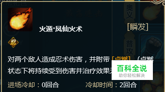 火主有三个奥义技能。第一个是凤仙火术,能够攻击两个敌人,并附带“点燃”效果,中了点燃的敌人不仅会受到伤害,而且无法回血。该技能无进场冷却,是一个比较好的先手技能。