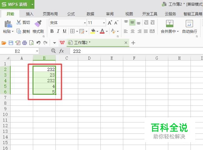 首先,我们打开我们电脑上面的wps表格,之后我们输入一些数字,然后我们选中这些数字的单元格;