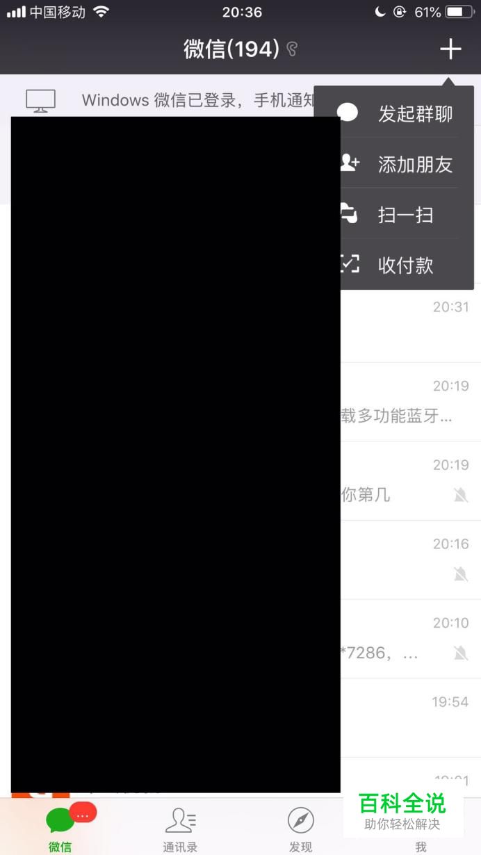 首先点击微信右上方的加号键,如下图所示。