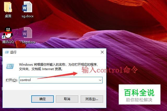 首先按Win+R组合键打开运行界面,在输入框中输入control命令,如下图所示