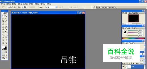 将背景漆成黑色,然后打入白色文字“吊锥”(72像素)