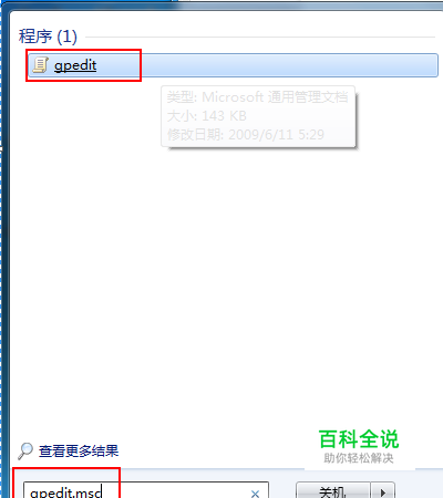 方法二:开始输入gpedit.msc , 打开gpedit.msc。