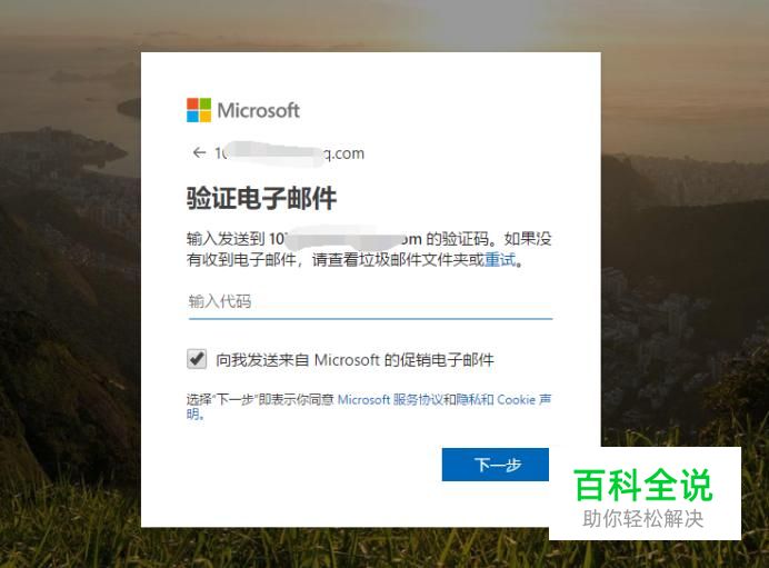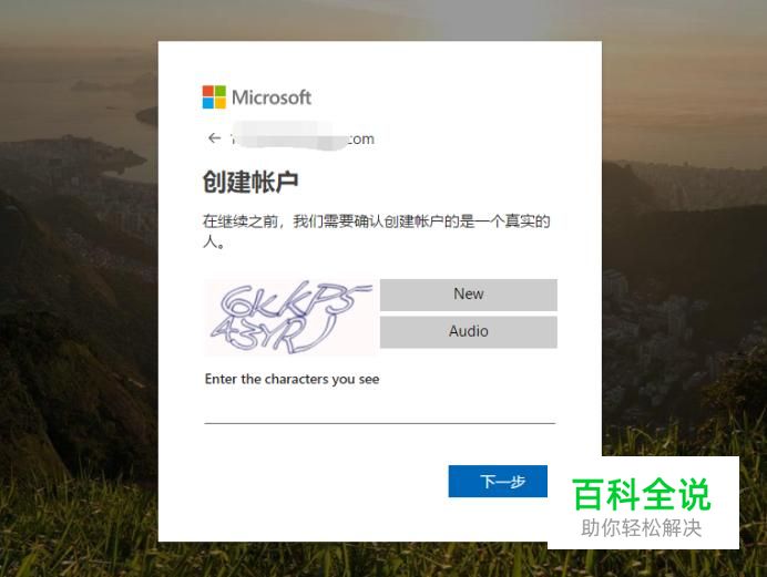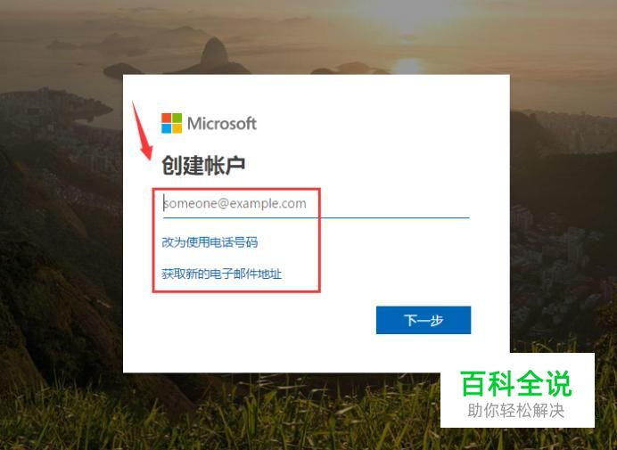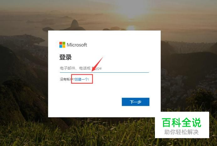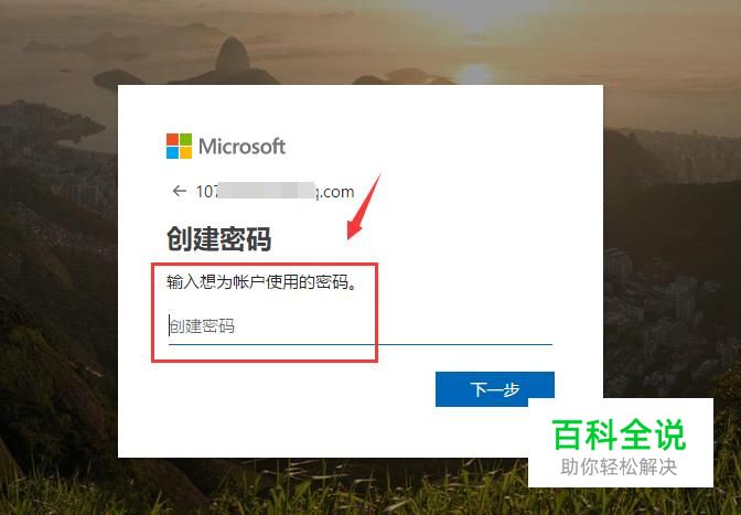 选择创建账户的方式,如使用手机号码或者邮箱,如果没有邮箱的话可以注册一个微软的邮箱,点击下一步。 输入该账户的密码,点击下一步。