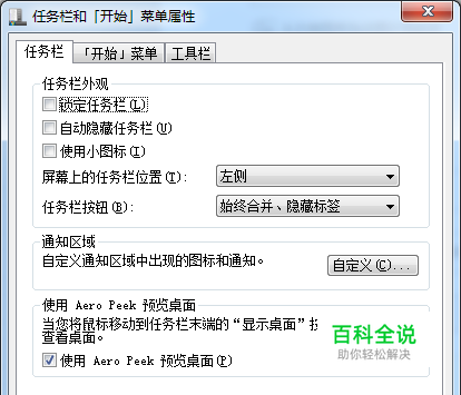在任务栏上点击右键,选择属性