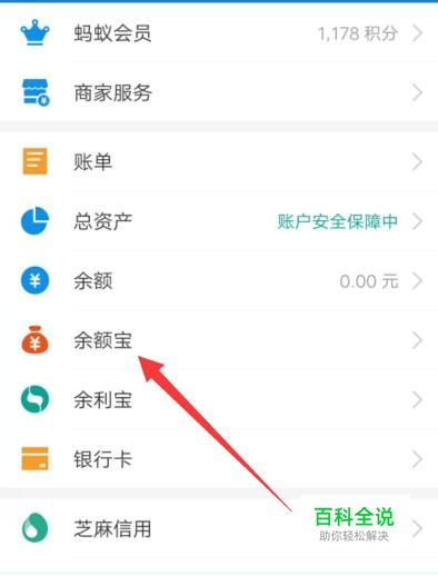 进入之后,找到余额宝,点击并进入,如图所示。