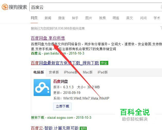 进入之后,搜索“百度云”,点击并进入官网,如图所示。