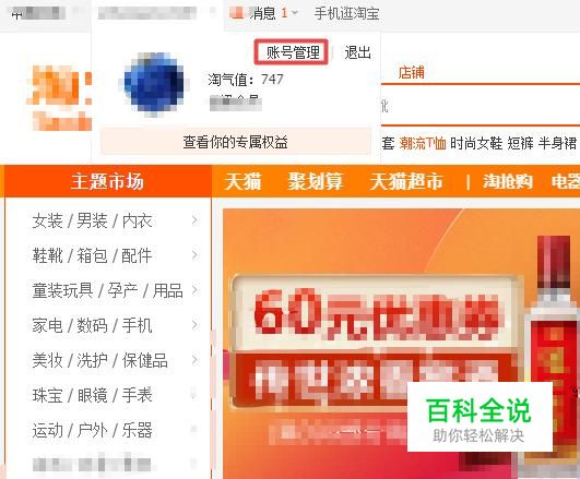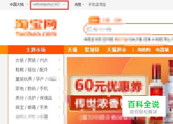 首先,我们打开我们的电脑,然后我们登录我们的淘宝,之后我们点击弹出界面中淘宝账号名边上的下拉箭头;