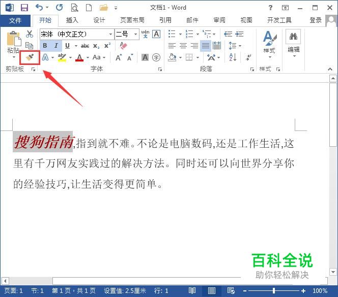 选择格式刷我们再选择剩余部分的文字,如图所示:
