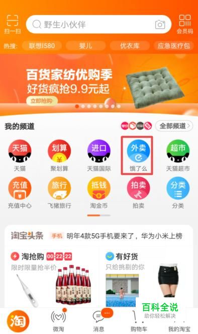 首先,我们打开我们的手机,然后我们打开我们手机上的淘宝,之后我们点击饿了么;