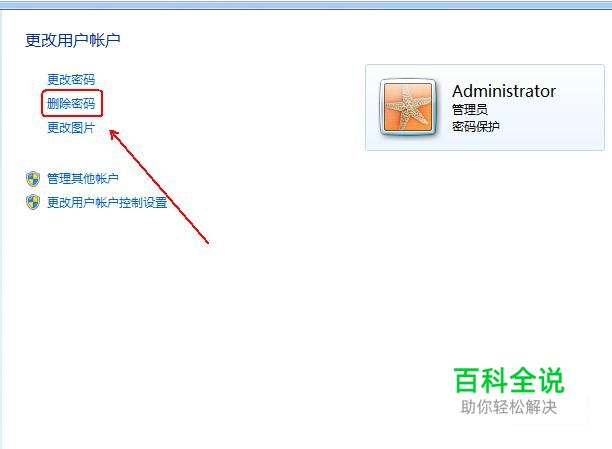 在“更改用户帐户”的下方点击“删除密码”选项。