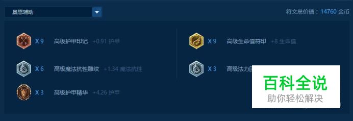 奥恩的体型十分巨大,看起来就给玩家一种安全感,而且英雄联盟给他的定位也是一位坦克英雄哦,所以我们的符文也要选择相肉一些,小编推荐这套:红色固定护甲*9、黄色固定生命值*9、蓝色魔法抗性*9、大精华固定护甲*3,这是防御力超高的一套符文呢。