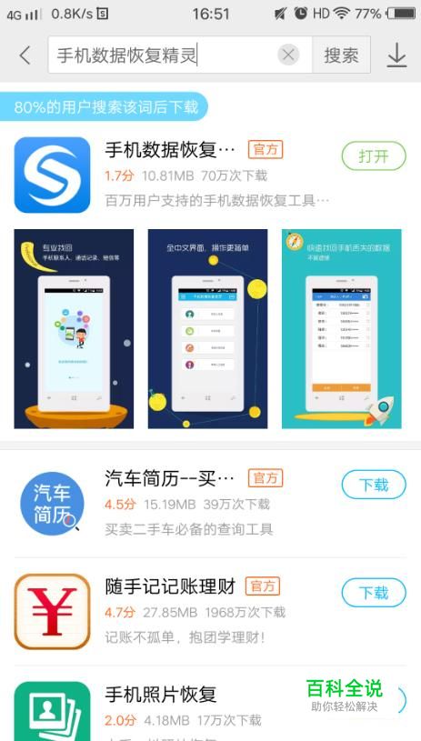 在vivo的官方手机商城搜索安装手机数据恢复精灵
