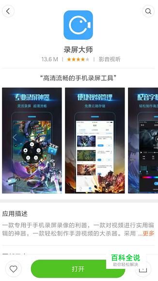 打开应用商店,找到录屏大师,下载并安装;