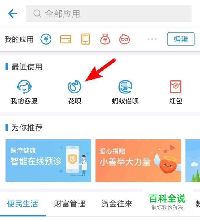 在更多页面,点击打开‘花呗’