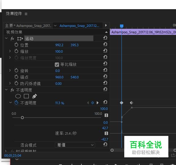 在“效果控件”面板中,单击“不透明度”旁边的三角形。