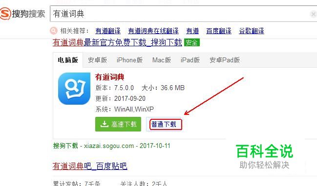 在“搜狗下载”中下载并安装“有道词典”客户端