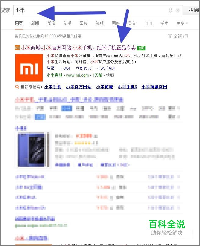 打开浏览器,用搜狗搜索,来搜索小米官网,点击进入小米官网!