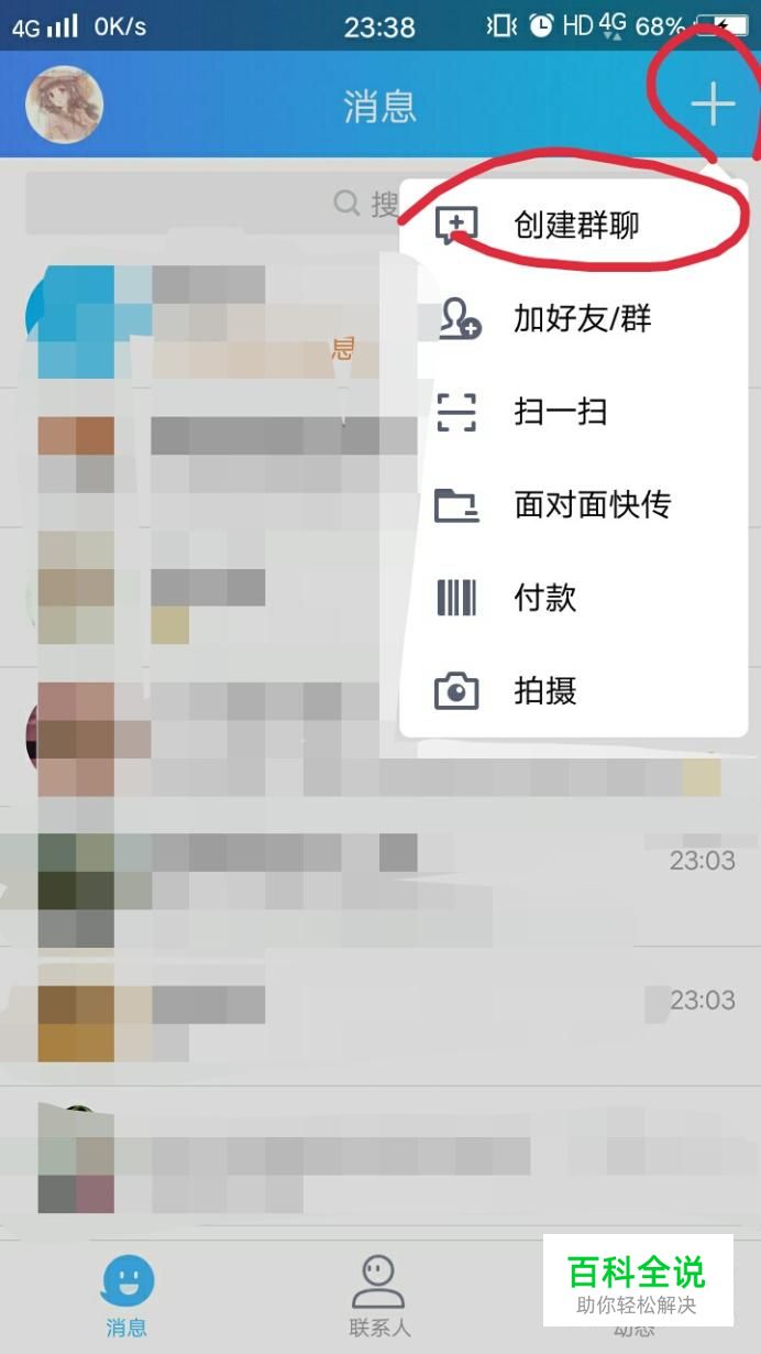 接下来点击界面上右上角的加号,有一个创建群的选项,点击一下。