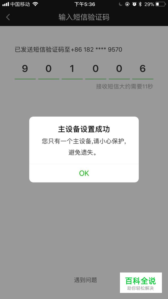 输入你收到的短信验证码,设置完成,如下图所示。