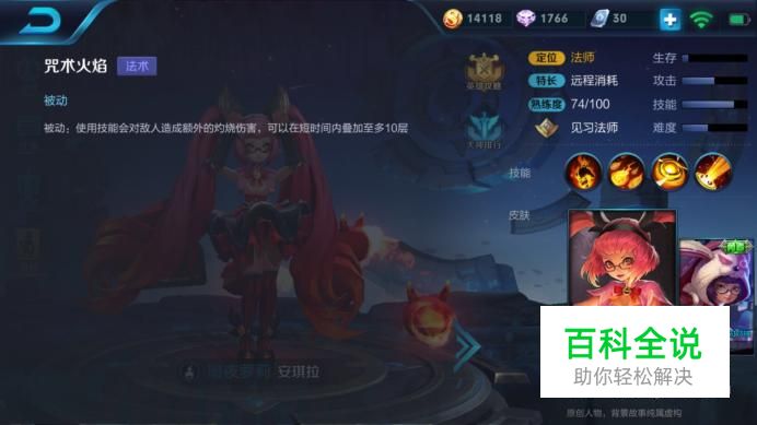 被动技能:咒术火焰 (1)技能解析:安琪拉在释放技能的时候都能附带火焰灼烧效果,最多可以叠加10层。 (2)使用技巧:安琪拉有蓝的情况下,尽量用技能去磨对位英雄的血,当被动叠加到10层伤害效果是十分明显的。