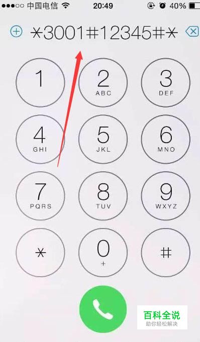 首先,打开手机的电话按钮,然后在拨打 *3001#12345#*