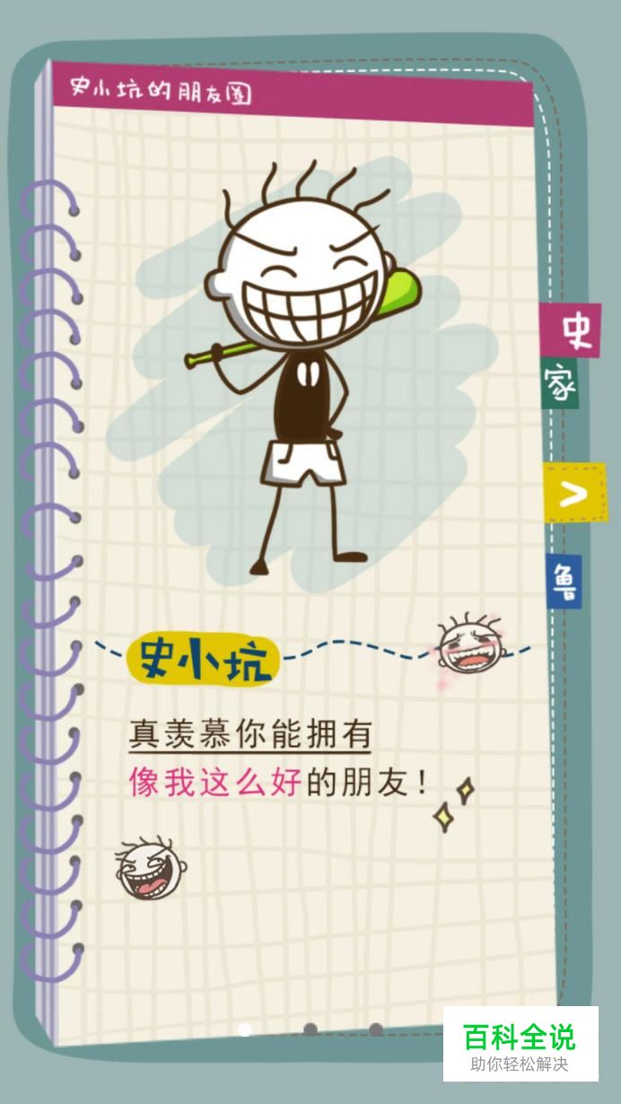 第十二关:史小坑贴门神。 首先向上或向下滑动门栓上的木棍 然后用两根手指左右滑开门,就可以贴好门神了。