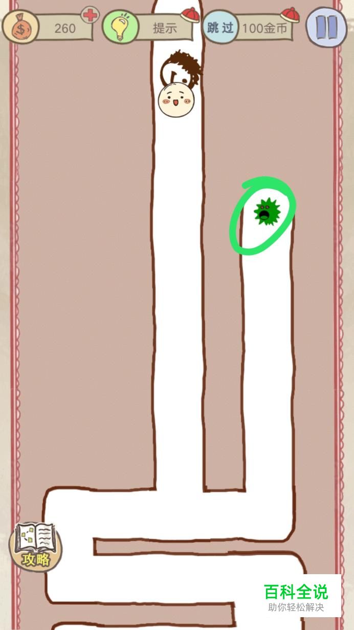 第十六关:别出白线。 按住屏幕使汤圆向前移动,按住的同时左右移动,可以控制汤圆的前进方向, 在汤圆遇到豆人时,先让吃豆人咬一口,这样才能通过前面狭小的通道。 吃豆人咬了汤圆一口后,要尽快拖动右下角绿色的病毒到吃豆人身上,吃豆人即被消灭,然后汤圆就可以走到目的地啦!