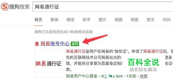 打开搜狗,输入‘网易通行证’进行搜索,