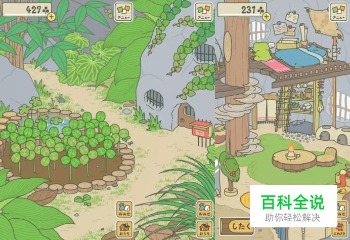 游戏主页面有两个,一个是庭院,一个是蛙的房间。庭院中有三叶草,收割三叶草就是收集金币,用于去商场给你的蛙蛙买出行所需的物件儿。