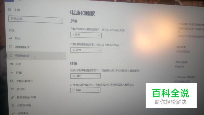 选择左侧的菜单栏的第三个选项“电源和睡眠”,然后点击一下