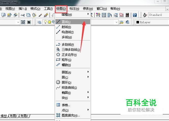 点击绘图工具栏中的“直线”,如图所示。