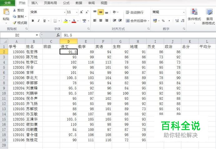 打开Excel2010,对下表中的语文成绩进行筛选。