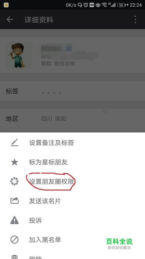 点开之后会出现如图片那样的信息列表,你就会看见设置朋友圈权限。