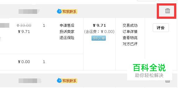 接下来,在你已经买到的订单后面有一个删除的图标,点击删除;
