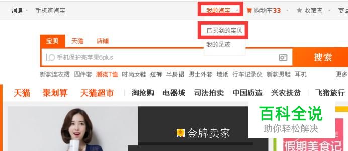 网页搜索淘宝,登录淘宝网站之后,点击上方“我的淘宝”,然后点击已买到的宝贝;