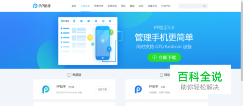 首先电脑到PP助手官网下载合适的版本。