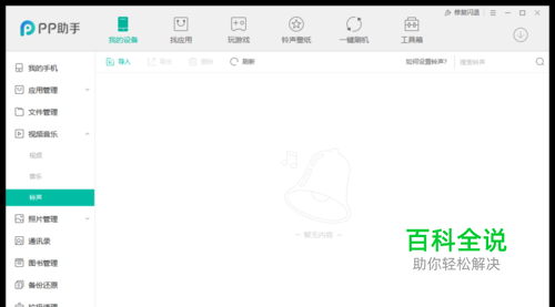 可以在『视频音乐』界面中的铃声,直接导入音频,会自动转换格式之后保存本地再导入手机即可在手机上面选用方才导入的铃声。