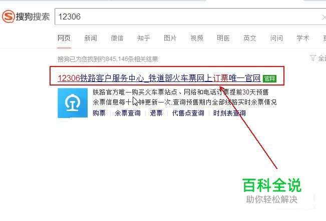 在搜索结果中点击12306的官方网站。