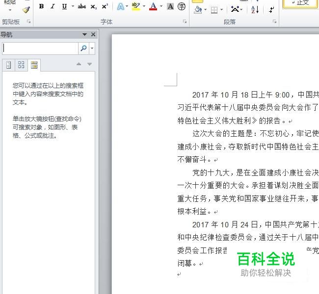 Ctrl +F:查找文字、格式和特殊项,使用之后出现导航页,我们在搜索栏输入搜索的字符点击搜索就可以了。