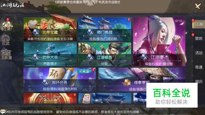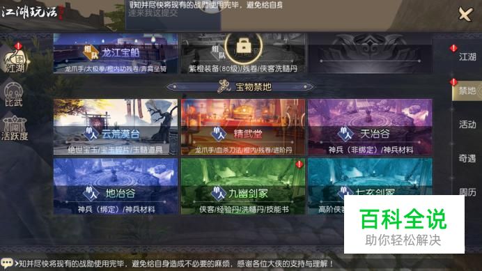 进入游戏江湖列表界面,在右侧选项中点击“禁地”