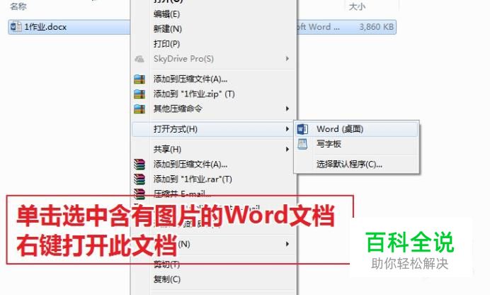 单击选中含有图片的Word文档,右键打开此文档(使用Microsoft office word打开)