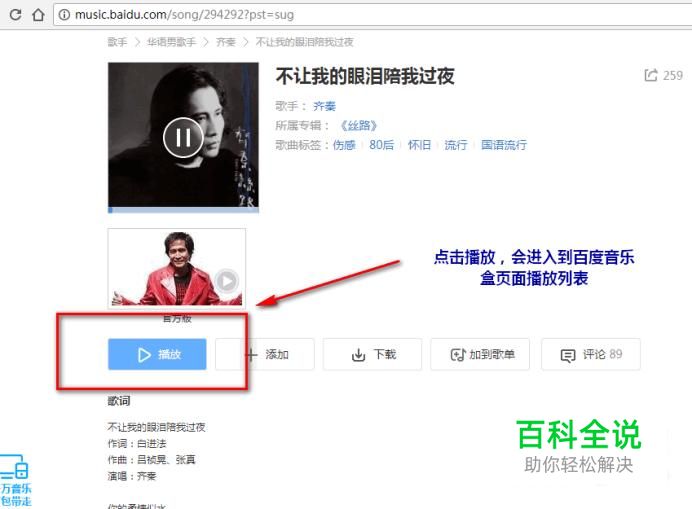 首先,打开chrome浏览器,打开百度网,登录百度账号(一定要登录百度账号),进入百度音乐界面,搜索自己喜欢的音乐并点击播放: